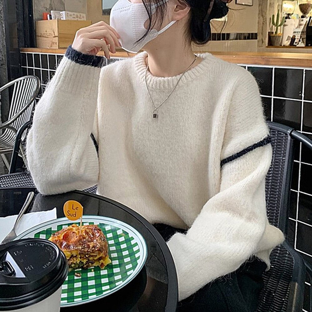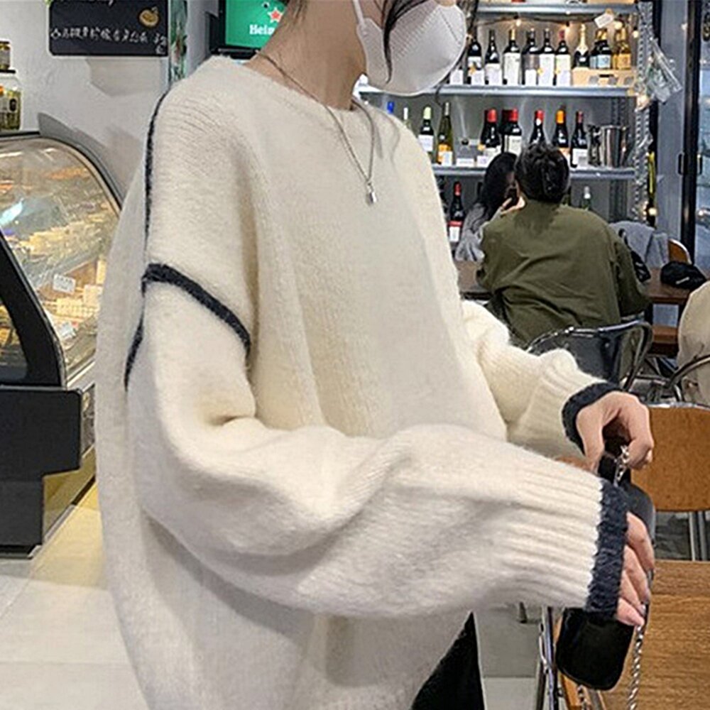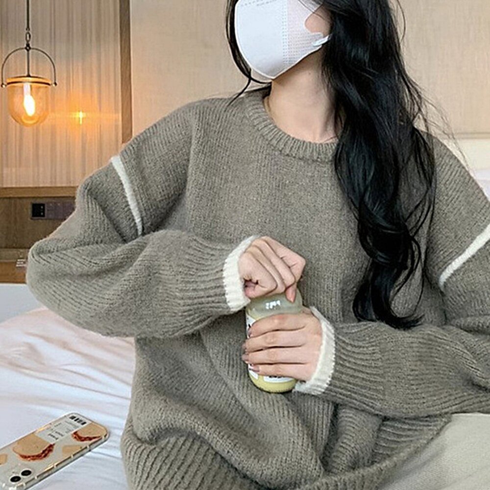 【台灣發貨】韓版寬鬆慵懶風圓領針織上衣 長袖上衣 長袖t恤 衣服 女裝 上衣【W525】-圖片-5