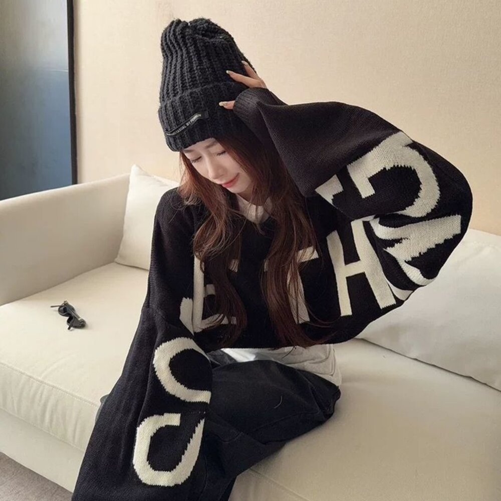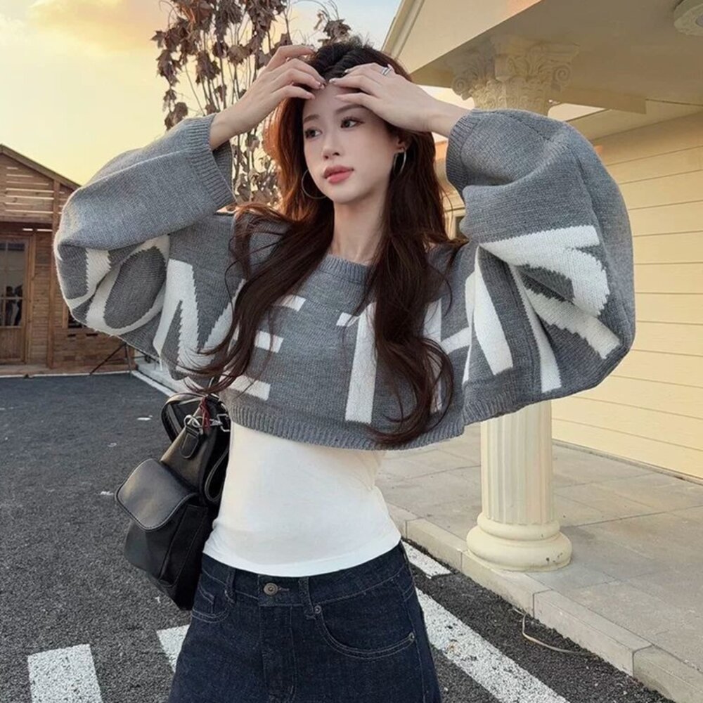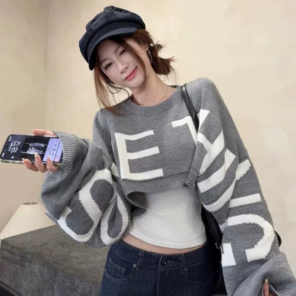 【台灣發貨】韓版寬鬆設計感短版毛衣 長袖上衣 長袖t恤 衣服 女裝 上衣【W694】 封面照片