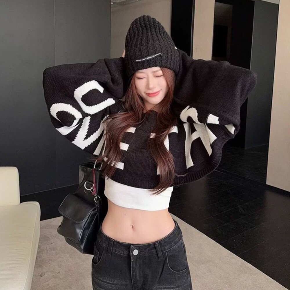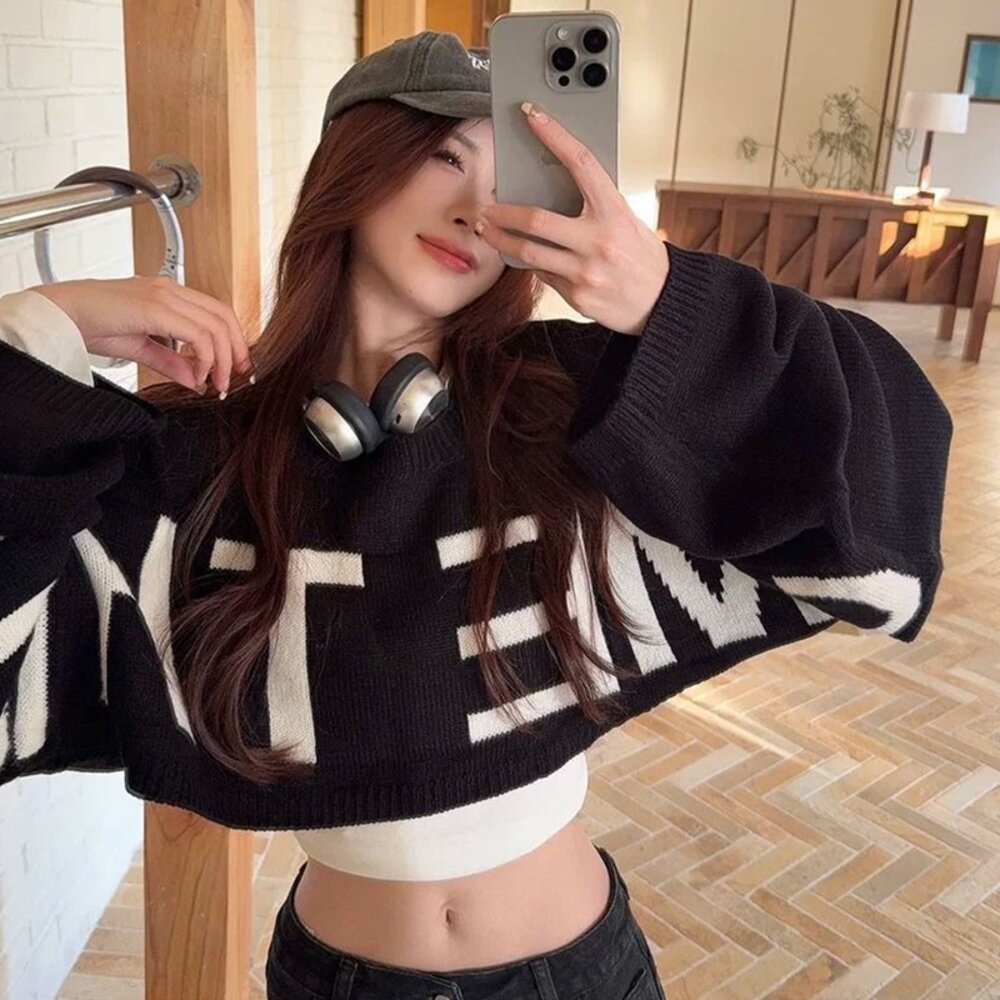【台灣發貨】韓版寬鬆設計感短版毛衣 長袖上衣 長袖t恤 衣服 女裝 上衣【W694】-圖片-6
