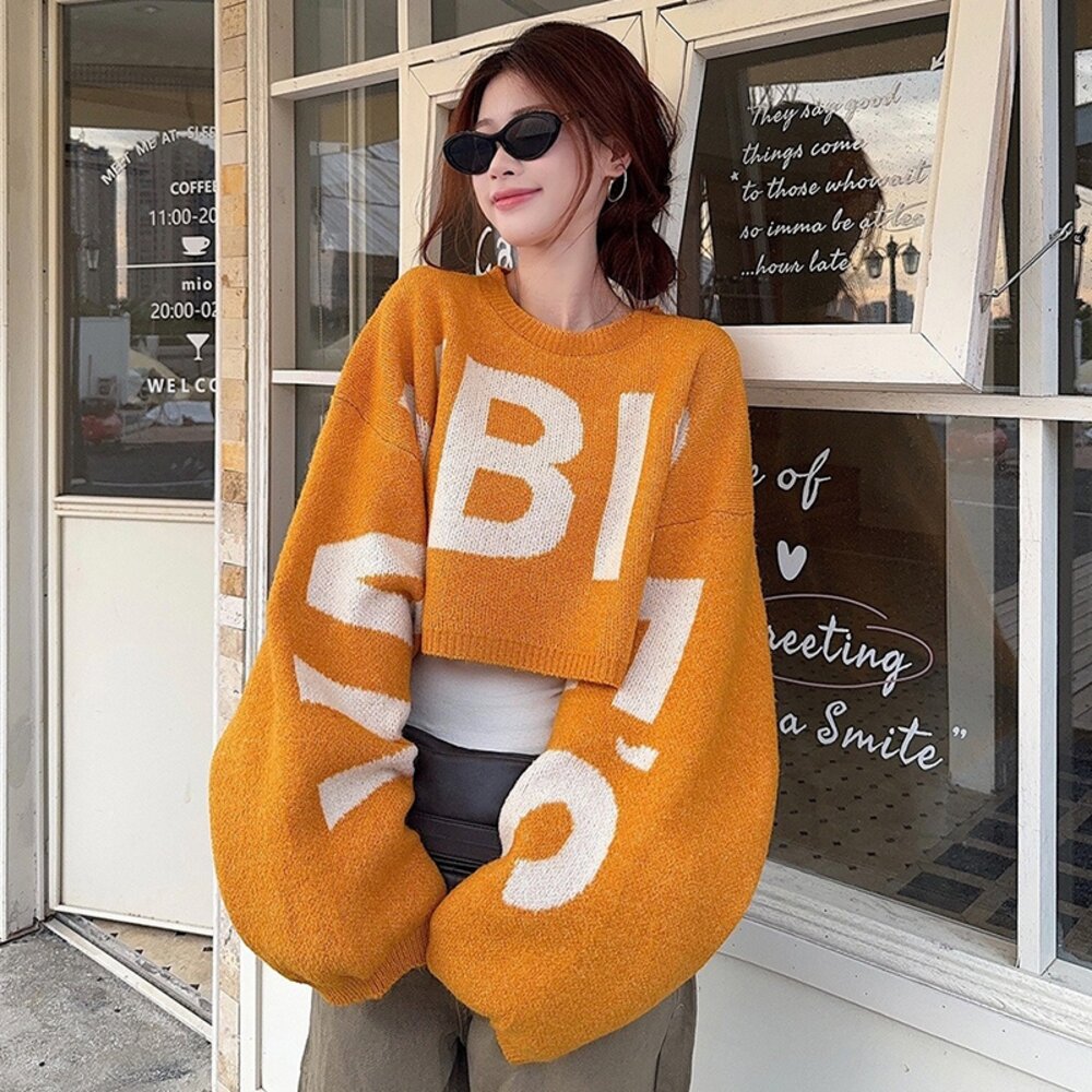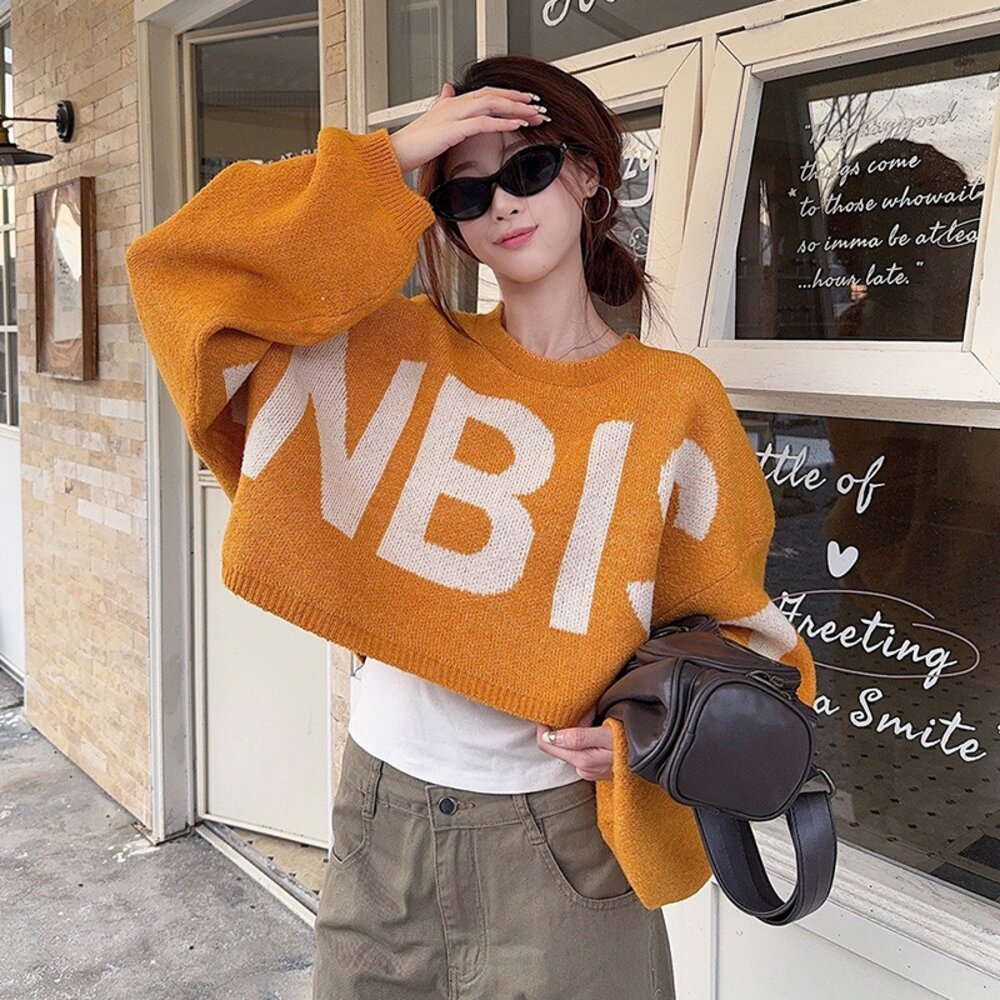 【台灣發貨】韓版慵懶日常字母短版針織上衣 長袖上衣 長袖t恤 衣服 女裝 上衣【W698】-圖片-8