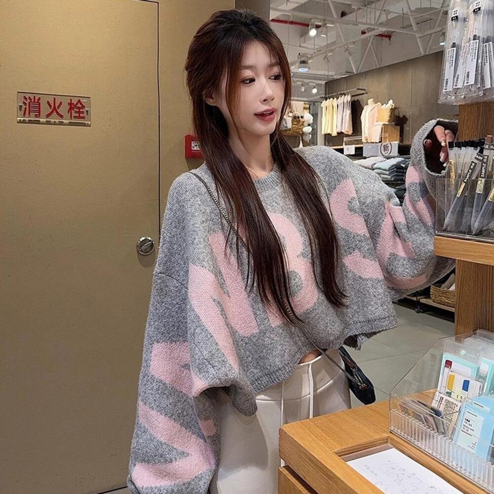 【台灣發貨】韓版慵懶日常字母短版針織上衣 長袖上衣 長袖t恤 衣服 女裝 上衣【W698】-圖片-6
