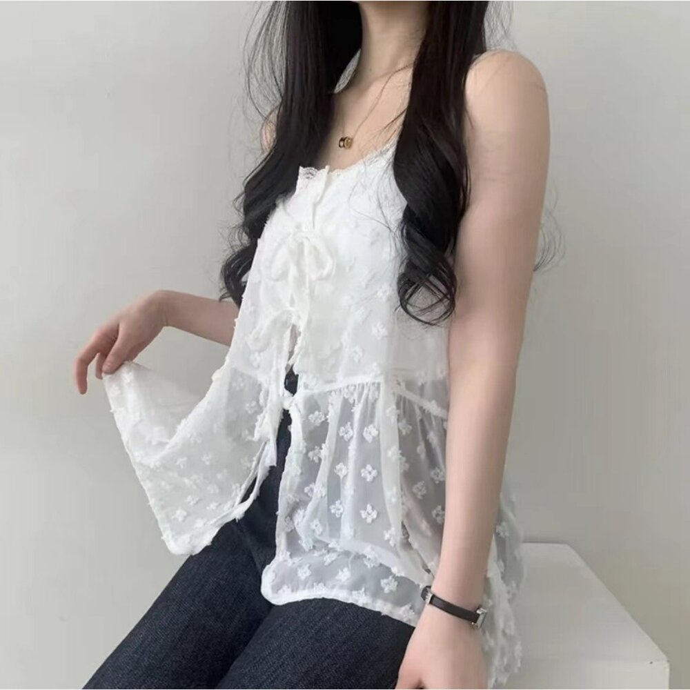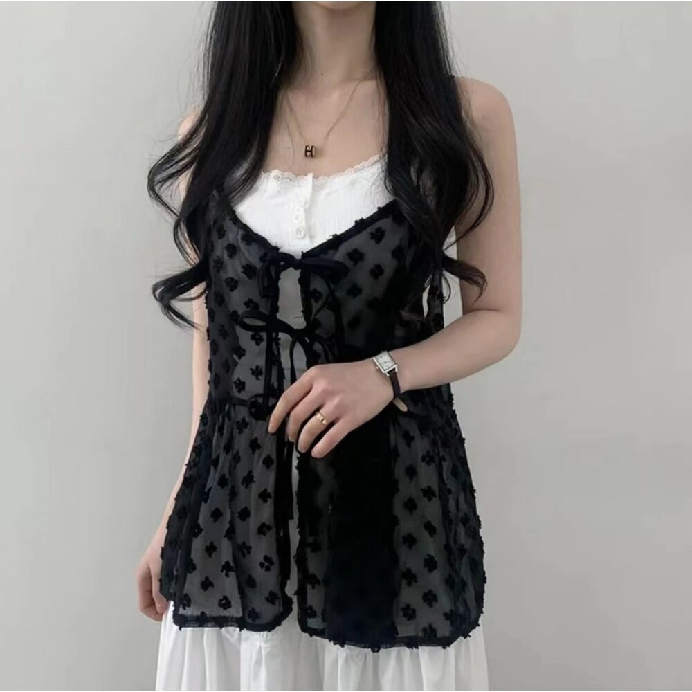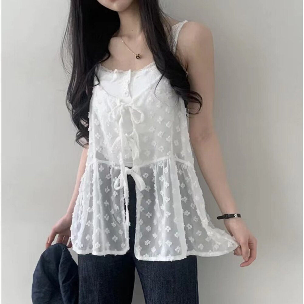 【台灣發貨】韓版疊穿花花小紗裙吊帶網紗背心 小可愛 背心 衣服 女裝 上衣【V391】-圖片-2