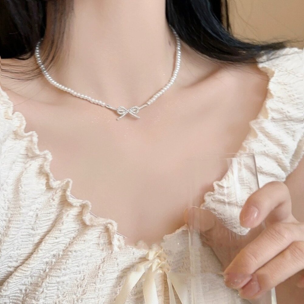 | 【N218】簡約項鍊-雙層珍珠蝴蝶結項鏈 | 現貨 5501 件 |