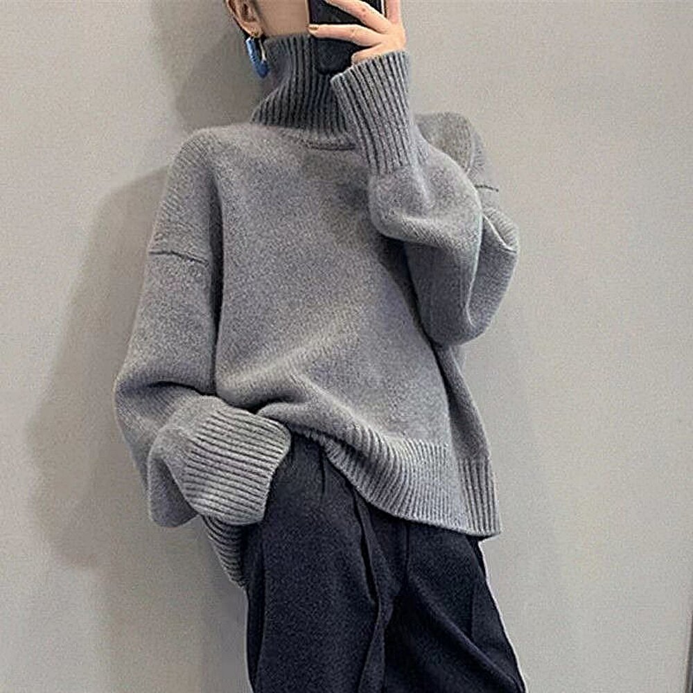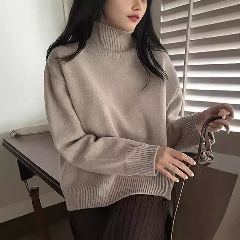 【台灣發貨】韓版高領毛衣 長袖上衣 長袖t恤 衣服 女裝 上衣【W607】-圖片-1