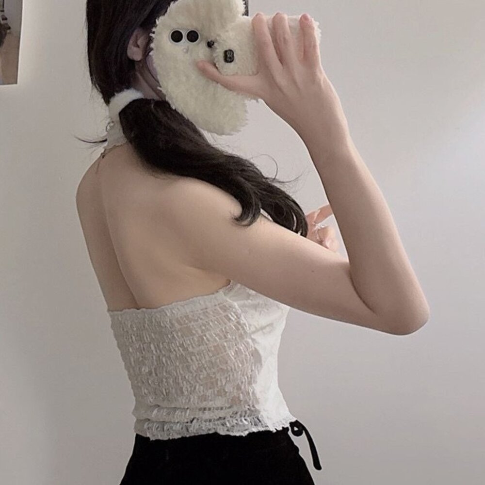 【台灣發貨】韓版蝴蝶結V領短版背心 帶胸墊免穿內衣 小可愛 背心 衣服 女裝 上衣【V434】-圖片-6