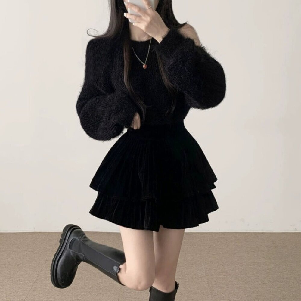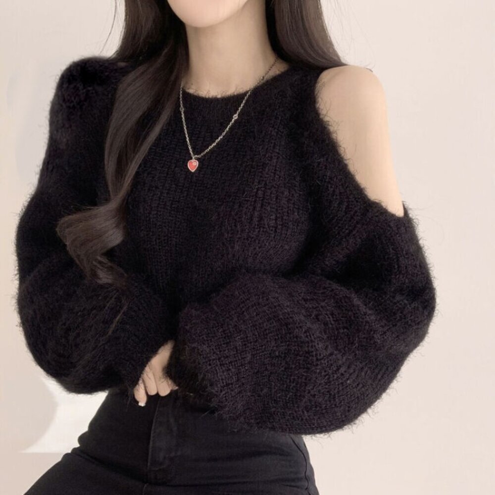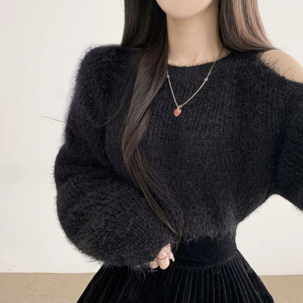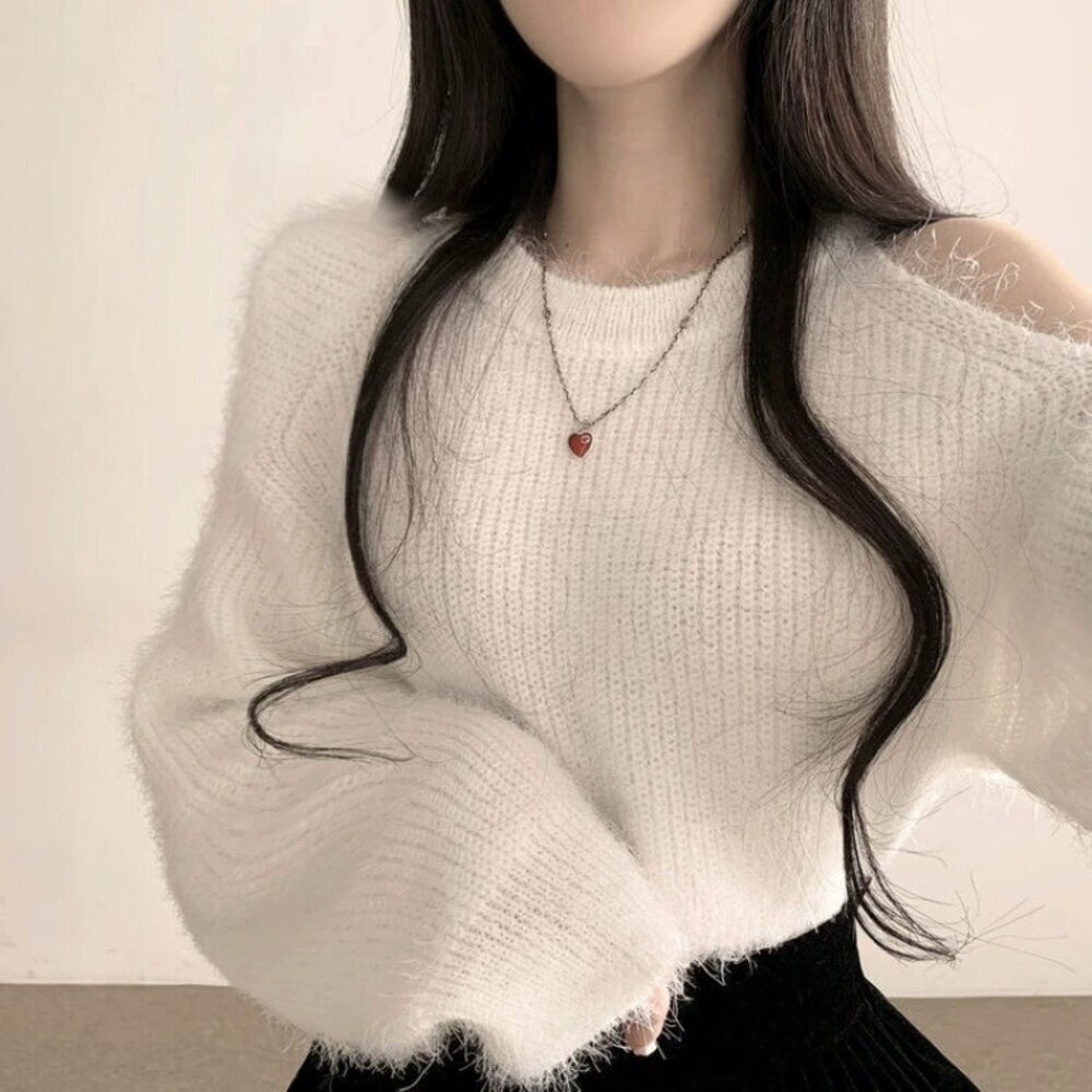 【台灣發貨】韓版氣質露肩毛衣 長袖上衣 長袖t恤 衣服 女裝 上衣【W696】-圖片-1