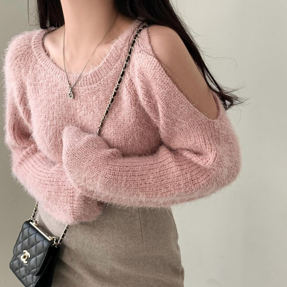 【台灣發貨】韓版氣質露肩毛衣 長袖上衣 長袖t恤 衣服 女裝 上衣【W696】-圖片-6