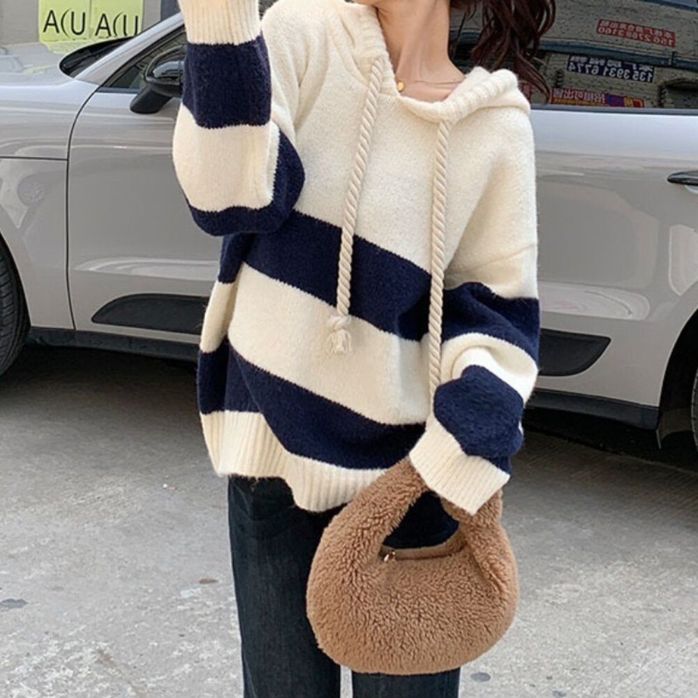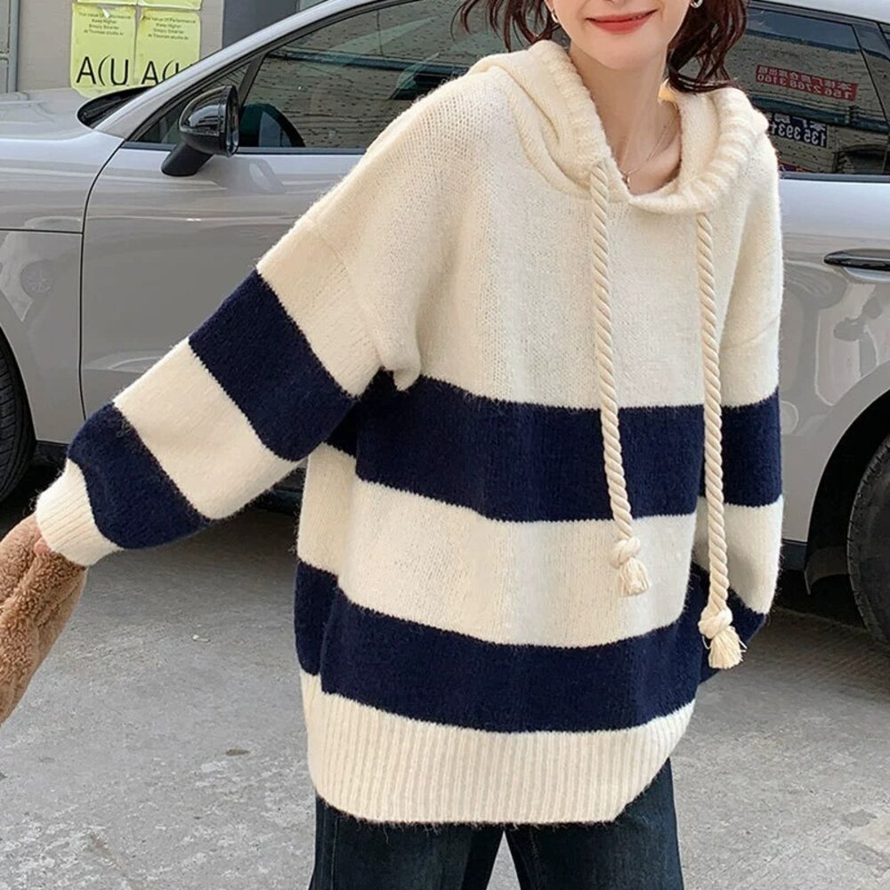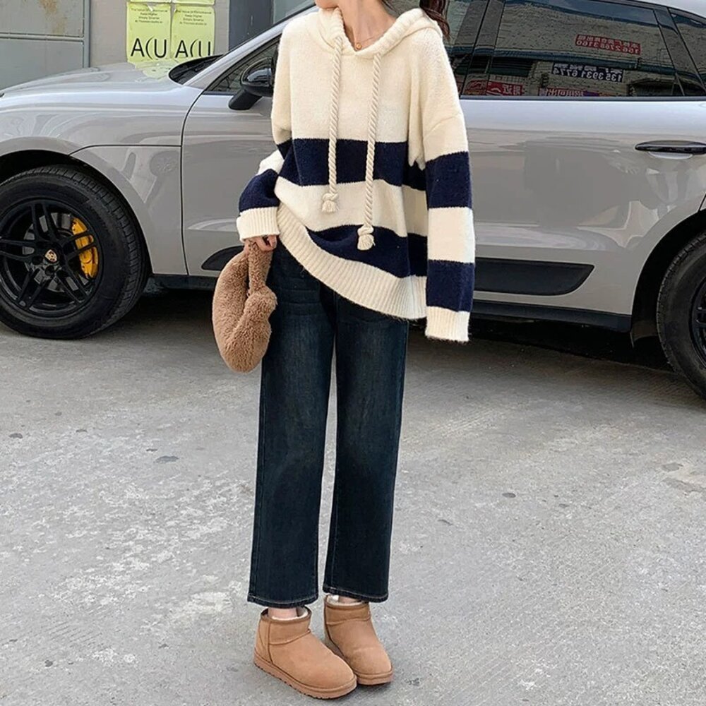 【台灣發貨】韓版寬鬆撞色條紋毛衣 長袖上衣 長袖t恤 衣服 女裝 上衣【W645】-圖片-6