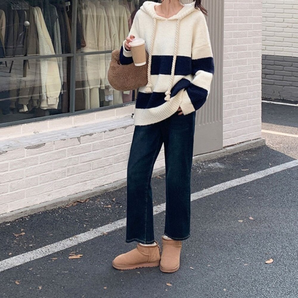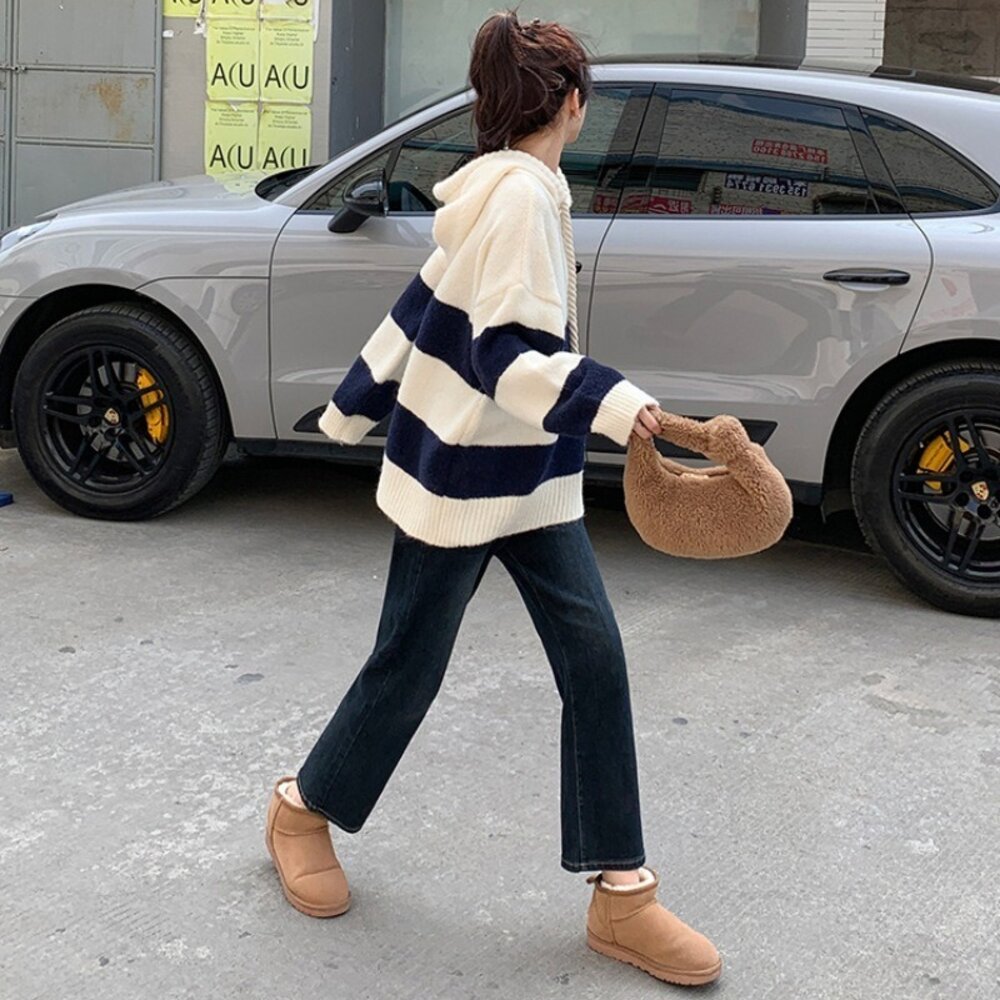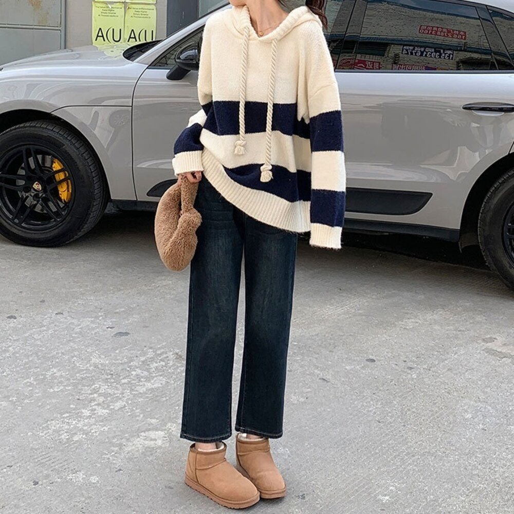 【台灣發貨】韓版寬鬆撞色條紋毛衣 長袖上衣 長袖t恤 衣服 女裝 上衣【W645】-圖片-4