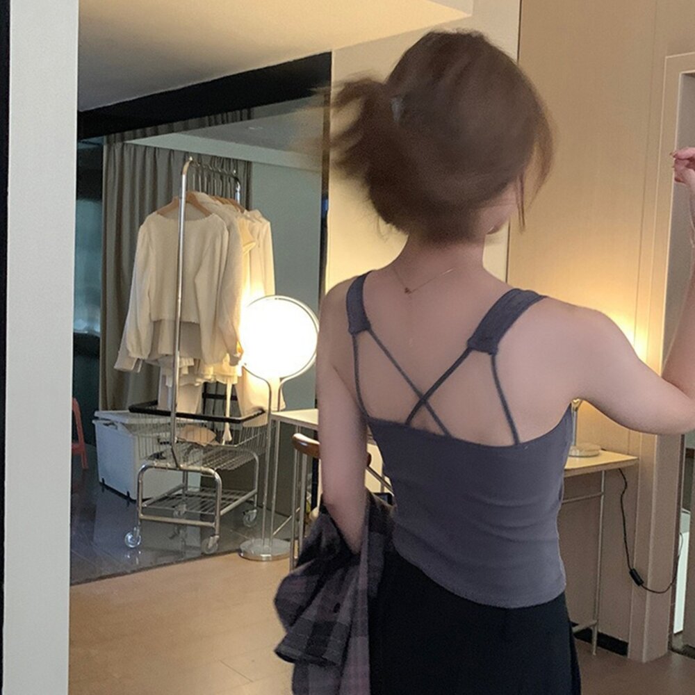 帶胸墊免穿內衣 小可愛 背心 衣服 女裝 上衣【V305】