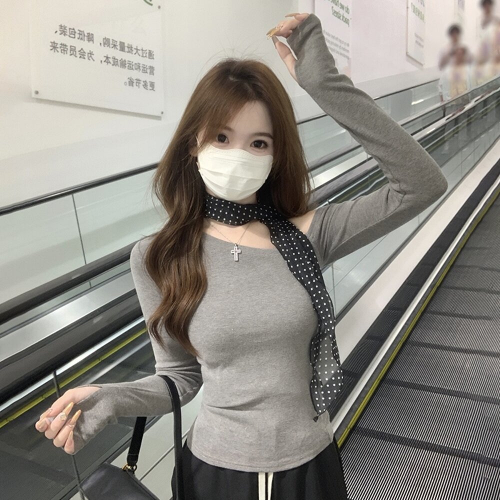 【台灣發貨】韓版氣質斜肩長袖上衣 長袖上衣 長袖t恤 衣服 女裝 上衣【W654】 封面照片