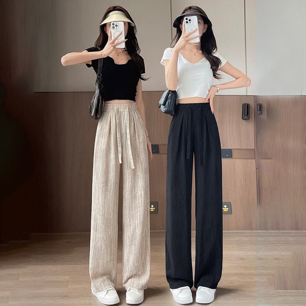 【台灣發貨】韓版冰絲垂感高腰寬褲 寬褲 褲子 女裝【P385】-圖片-1