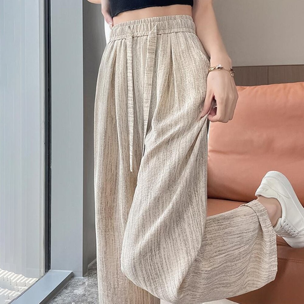 【台灣發貨】韓版冰絲垂感高腰寬褲 寬褲 褲子 女裝【P385】-圖片-7