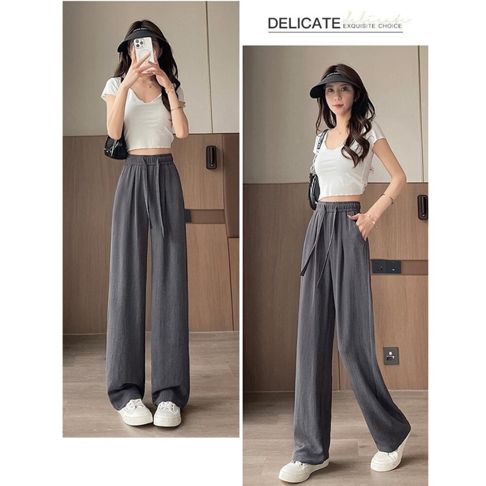 【台灣發貨】韓版冰絲垂感高腰寬褲 寬褲 褲子 女裝【P385】-圖片-8