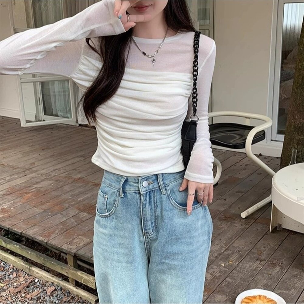 長袖上衣 長袖t恤 衣服 女裝 上衣【W658】