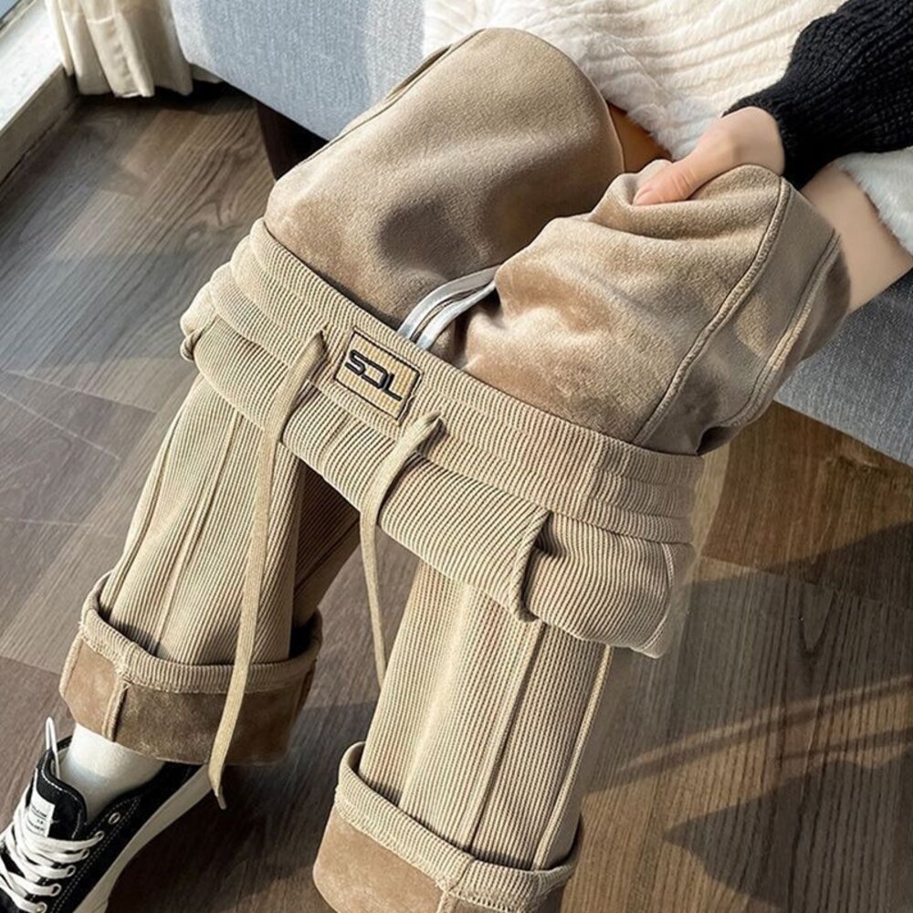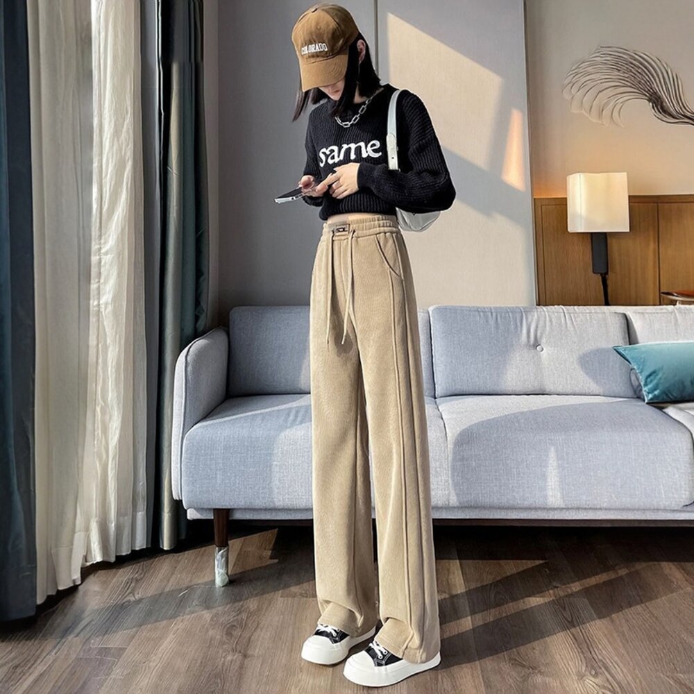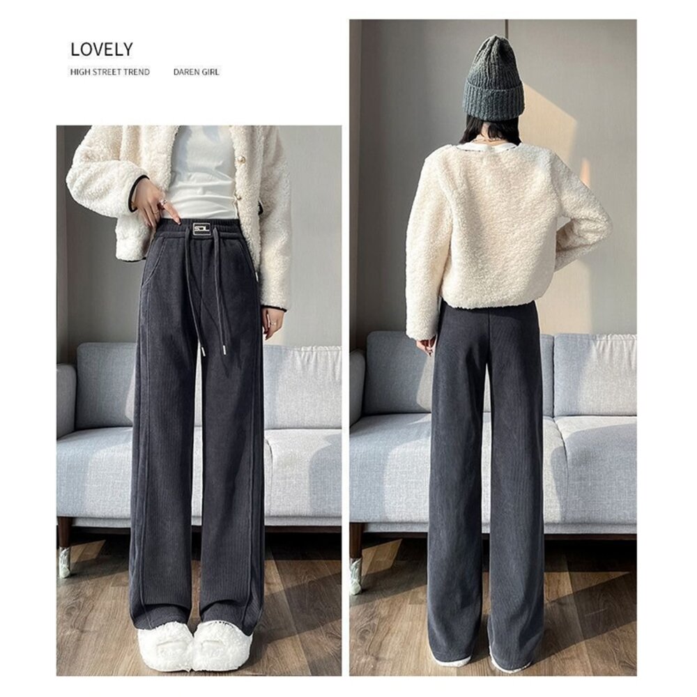 【台灣發貨】韓版超厚刷毛褲 寬褲 褲子 女裝【P412】-圖片-1